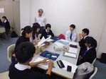 11:00 青山学院大学の教室で、更にたくさんの学生の皆さんに加わっていただき、樋田先生のお話の後、先生の進行で、大学生の皆さんと吉高生が6グループに分かれて交流会を行いました。自己紹介も合わせたアイスブレイクの後、吉高生がこの夏行った『聞き書き』の中間まとめの資料を基に、まず吉高生のそれぞれのグループの代表が発表を行い、その発表に対して大学生の皆さんが質問や意見を述べるかたちでディスカッションを行いました。ディスカッションでは、大学生が高校生に対して真剣に意見を述べたり疑問をぶつけたりして議論をしてくれていて、大学生の皆さんの意見の内容もさることながら、それ以上にその積極的な姿勢が高校生にとっては大変参考になると同時に大いに刺激になったのではないでしょうか。なお、『聞き書き』の発表の際には、能美君が、この夏吉賀高校実行委員会が主催した『全国高校生自然環境サミットin吉賀』の活動の様子も報告しました。