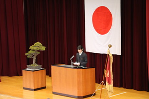 在校生送辞では、泉生徒会副会長が卒業する先輩たちに感謝と激励のメッセージと、先輩たちの思いを引き継いで吉賀高校を盛り上げる決意の言葉を述べました。そして、松田元生徒会長が、答辞として吉賀高校での思い出を語り、保護者・教員・地域の皆様に対する感謝の気持ちと共に学んだ仲間を大切に思う気持ちを述べました。