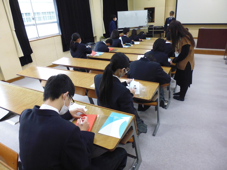 その後、1組と2組に分かれて図書館オリエンテーションとビジネス手帳の使い方の説明を受けました。