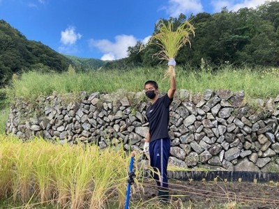 9月19日(日)1年生3人と教職員、「よしか塾NEXT」の講師として活動しておられる武井先生も含めた9名で、吉賀高校地域クラブがオーナーになっている大井谷棚田の稲刈り体験をしました。