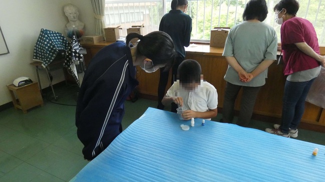 7月10日(月)3年生坂﨑愛美香さん、三浦彩乃さんのLPTAS班が朝倉小学校にてUVレジン教室を開催しました。生徒は何度も実践を行っており、とてもスムーズに教室を行うことができました。