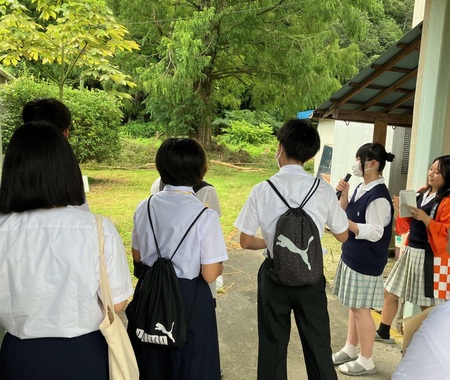その後、いくつかのグループに分かれて吉高生が参加者に校内を案内しました。